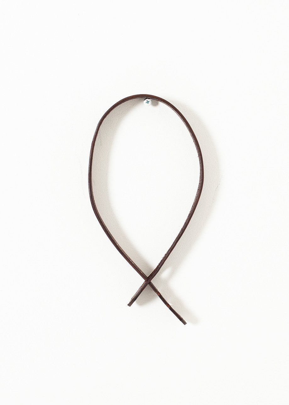 Color Brown 100% Leather. Made in U.S.A. Length 28 X 2".