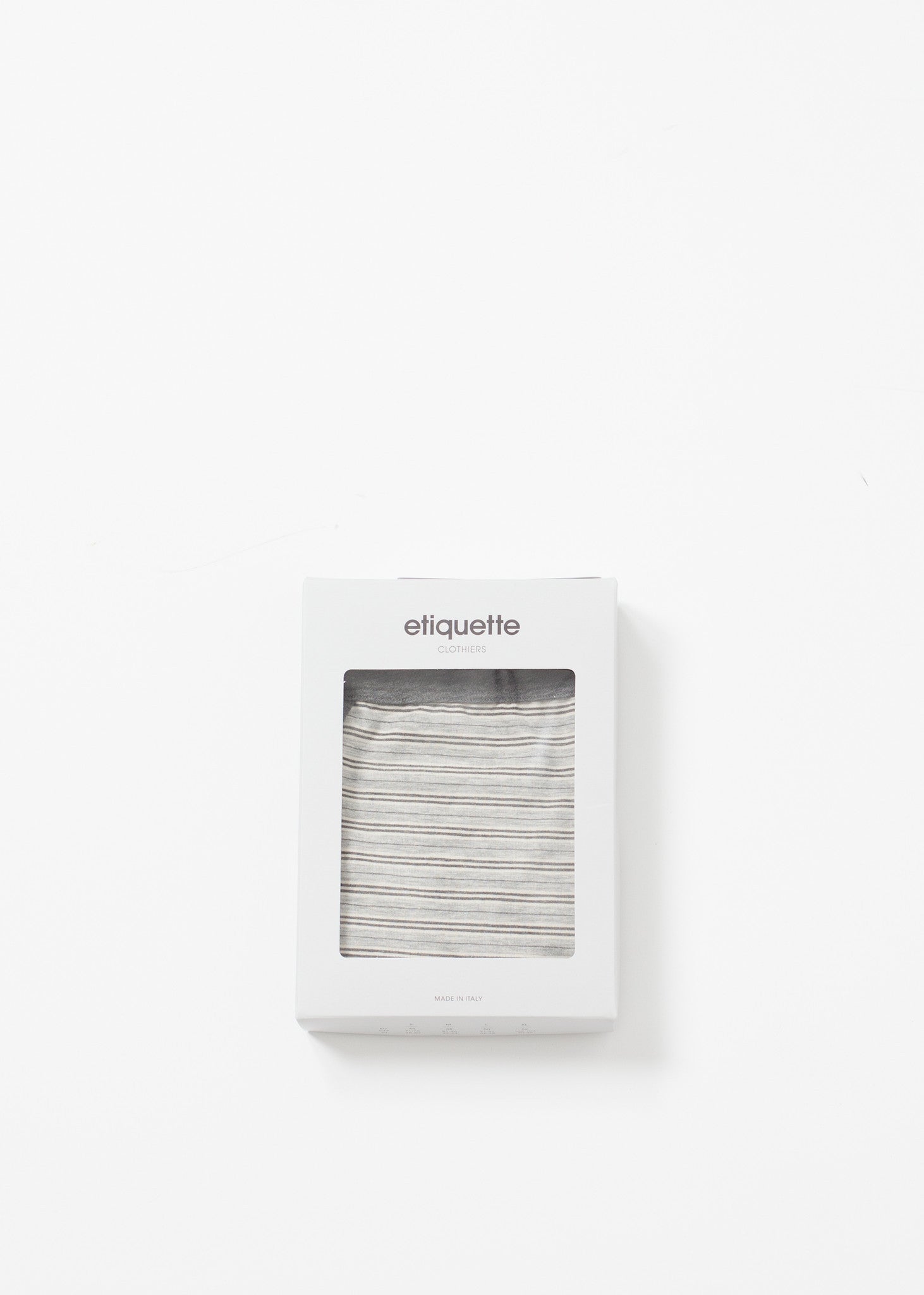 This prewashed cotton brief is composed of the finest gauge for the softest materials. Offers stretch and softness in wear. Elastic waistband for ease. Etiquette. Color Heather Grey. 95% Cotton, 5% Elastane. Made in Italy.